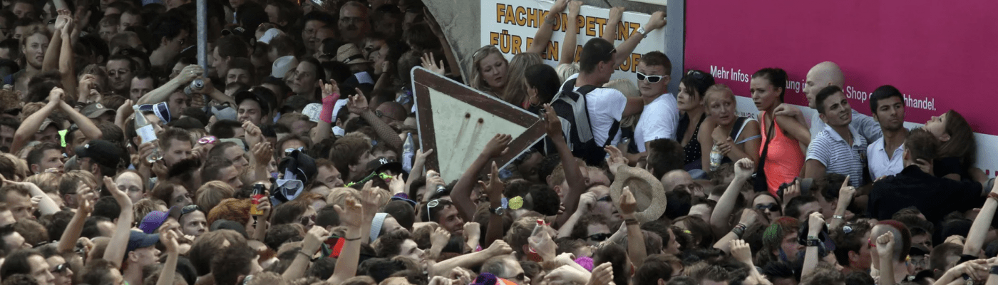 A series of projects on the Loveparade disaster in 2015 highlighted the fact that those responsible had turned a blind eye. Those responsible were invited to view a dance floor made up of 21 closed doors. Those responsible were given medical gloves produced especially for this project, which had only one index finger. Thousands upon thousands of medical gloves on the floor were the defining image of this disaster. Everyone pointed the finger at others to distract attention from themselves—no one took responsibility.